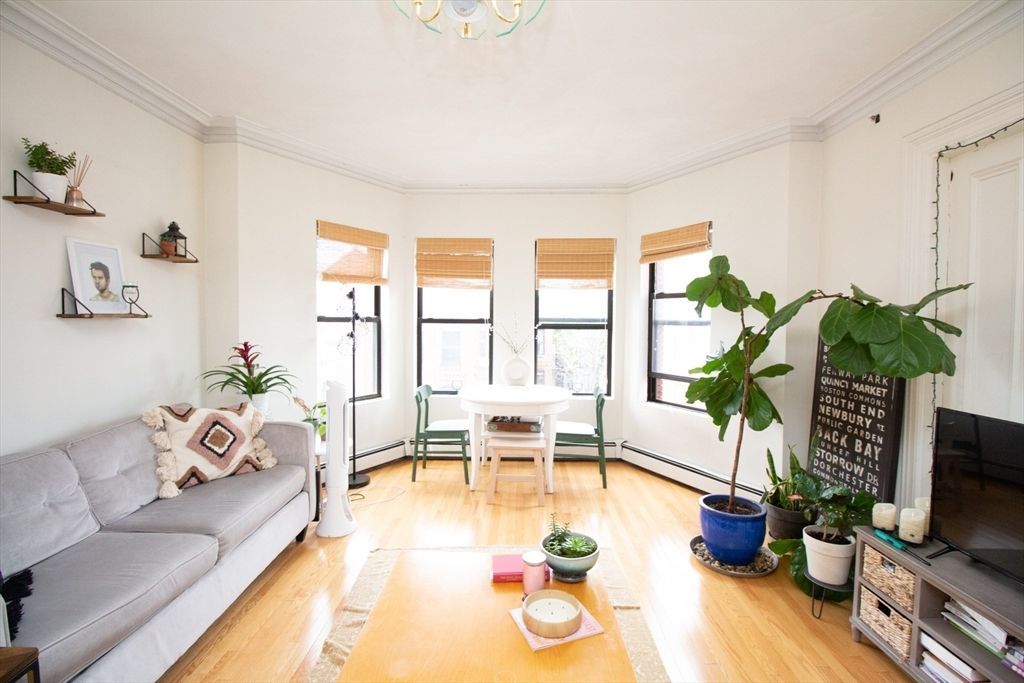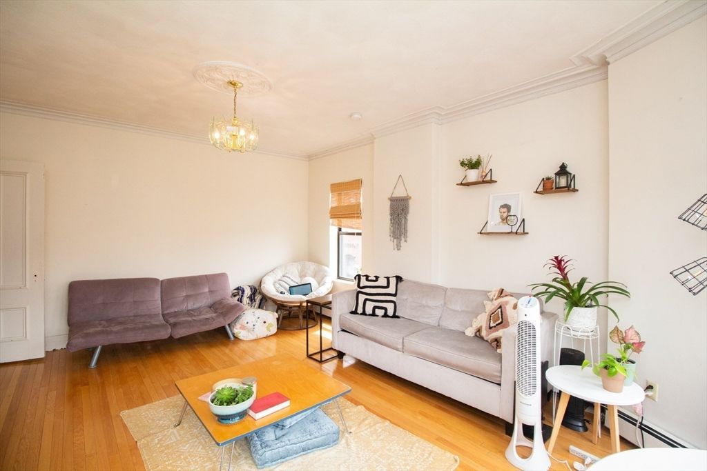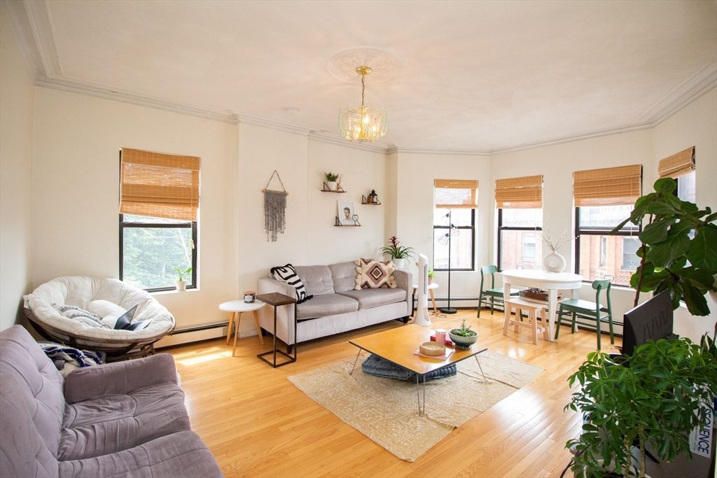 4 BED - BROOKLINE VILLAGE - D LINE, LONGWOOD - HT/HTW INCL: Available now. Spacious four-bedroom apartment in the heart of Brookline Village, directly across from the MBTA Green Line (D) and just one stop to the Longwood Medical Area. Offering approximately 1,300 sq ft of living space, the apartment provides a comfortable layout with generously sized rooms and great natural light. The unit features a large front living room with beautiful bay windows that fill the space with sunlight, creating an inviting central area for relaxing or gathering. All four bedrooms are well-proportioned with hardwood floors and good closet space. The eat-in kitchen offers ample cabinet storage and room for a full dining table, making it a practical setup for everyday cooking and shared meals. Additional highlights include hardwood flooring throughout, high ceilings, and a large bathroom. Laundry is available in the building for added convenience. Heat and hot water included.