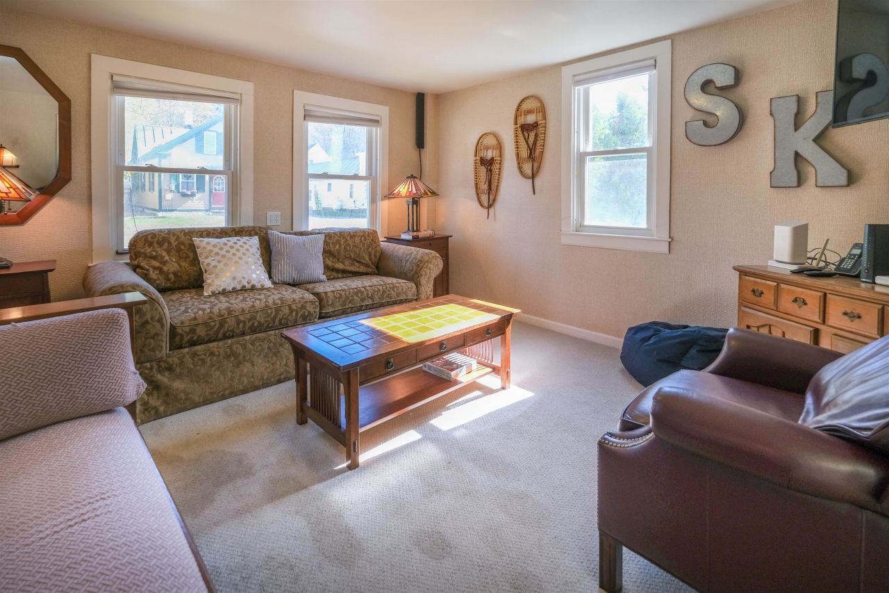 Welcome to this charming home nestled in a small neighborhood along the scenic Black River in Cavendish, Vermont. This inviting property combines classic Vermont character with versatile living spaces, all within walking distance of the town green, shops, restaurants, and more. Step inside through the mudroom. The kitchen offers a warm, welcoming space with a sunny dining area perfect for morning coffee or casual meals. A formal dining room provides space for larger gatherings, while the living room, bathed in morning light, creates a cozy setting to relax and unwind. A first-floor bedroom adds convenience and flexibility for guests or main-level living. Upstairs, you'll find three additional bedrooms and a full bathroom, providing plenty of room for family or friends. The property also includes an attached two-car garage and a studio apartment ? ideal for guests, rental income, or a private home office. The studio features a full kitchen and dining area, a full bathroom, and a comfortable sleeping space. Enjoy life along the river with easy access to outdoor recreation, and the charm of a small Vermont village right outside your door. This Cavendish home is a wonderful opportunity to experience the best of Vermont living ? convenient, comfortable, and full of character. Visit the Okemo real estate community today. Taxes are based on current town assessment.
